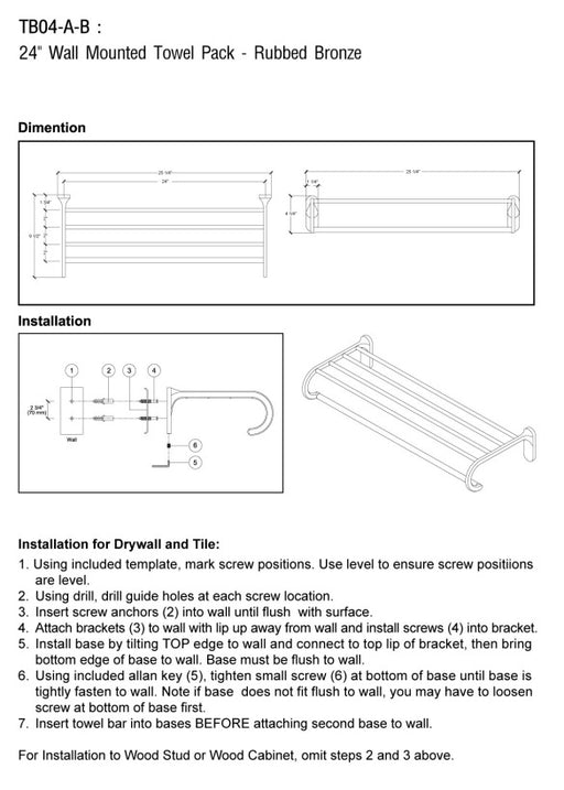 SKU: TB04-A-B Modona BathroomIn stockCommercial & Hotel Grade 24” Towel Rack. SIZE: Towel Rack is 24” Center Base to Center Base and 25.25” End to End, 4” Height, 9½” Width. QUALI...